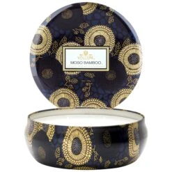 The perfect size to pepper throughout a room! As enchanting as the aroma itself, this tin features bold colors swirling across the Japanese-inspired designs.