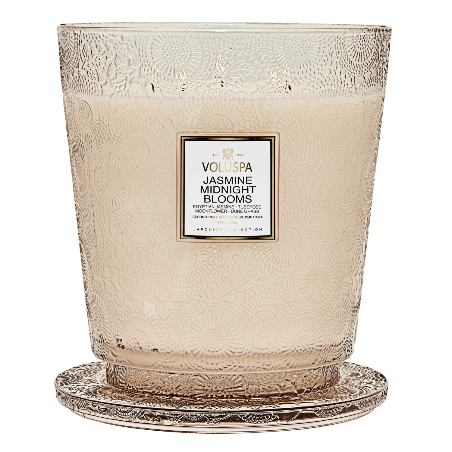 Voluspa’s unique coconut wax blend is hand-poured into a 123 oz. embossed glass vessel and topped with a matching lid that keeps the candle dust-free when not in use. Our five wicks allow you to enjoy fragrance throw for 250 hours. Our candles are hand-poured in the United States and feature our proprietary, clean-burning coconut wax blend and 100% natural wicks. Our products are free of phthalates, pesticides, parabens and sulfates and are never tested on animals. Up-cycle this best seller into a keepsake after the last burn.