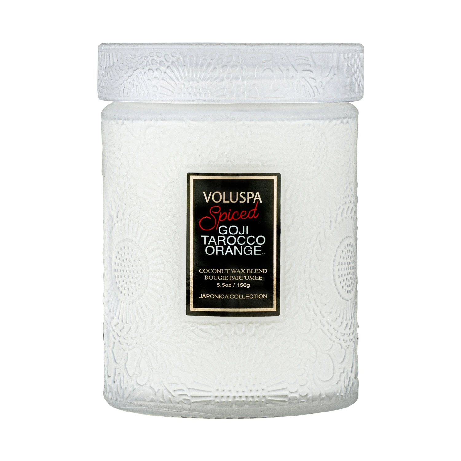 A new twist on an old favorite. Welcome home for the holidays with our best-selling Goji Tarocco Orange fragrance. Spruced up with homey spices of Anise, Clove, and Cinnamon and packed into a frosted winter white glass.
